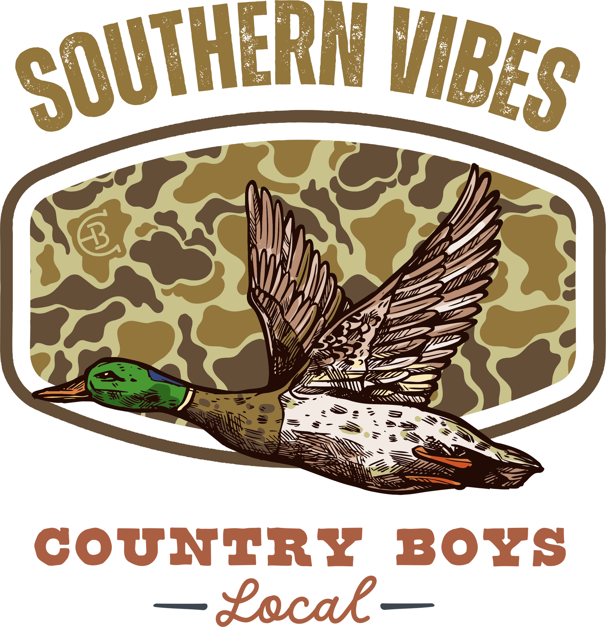 Bring the heart of the South wherever you go with the Southern Vibes tee from Country Boys Local! This design captures the essence of country living, featuring a beautifully detailed mallard in flight, framed by a truck's review mirror with a bold camo backdrop. Where you're in the blind, on the backroads, or just living the laid-back Southern lifestyle, this tee is made for you.